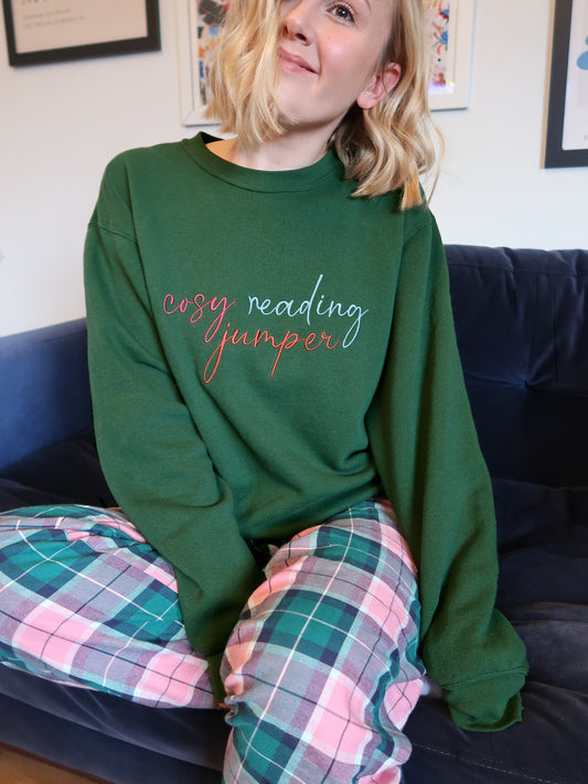Oversized Embroidered ‘Cosy Reading Jumper’ Sweater | Gift for Book Lover | Book Jumper