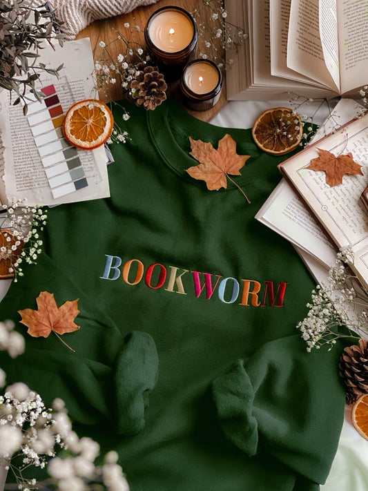 Oversized Embroidered Bookworm Sweater | Gift for Book Lover | Gift for Bookworm