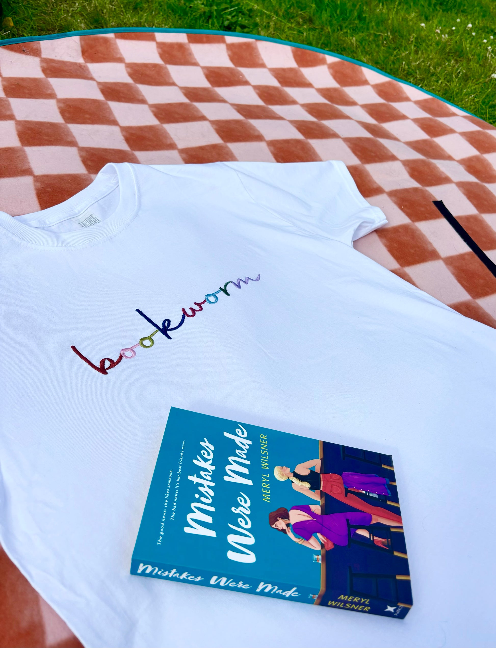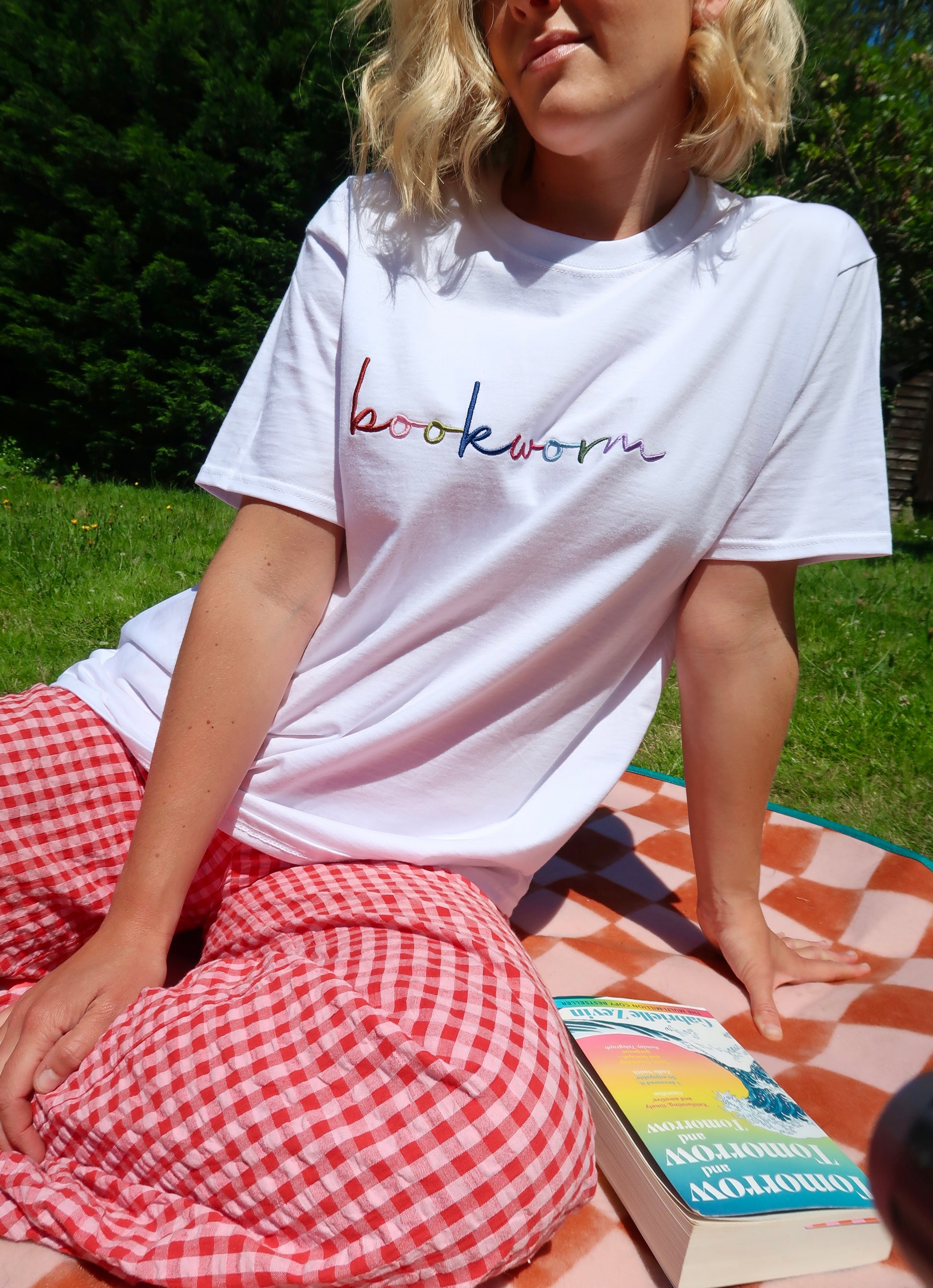 Embroidered Bookworm Oversized T-Shirt | Bookish Tee | Gift for Book Lover