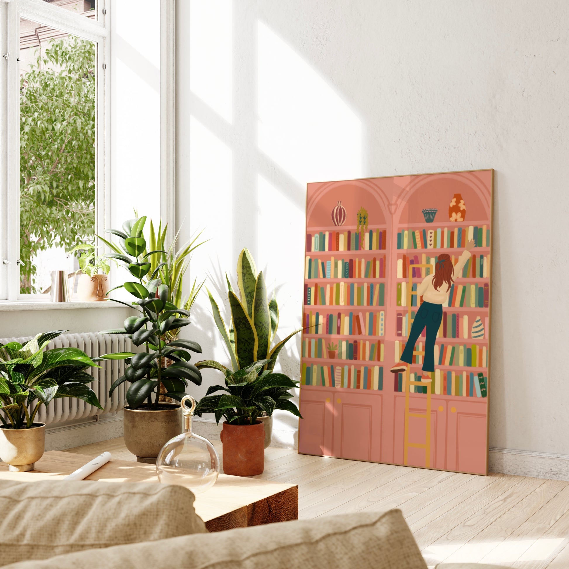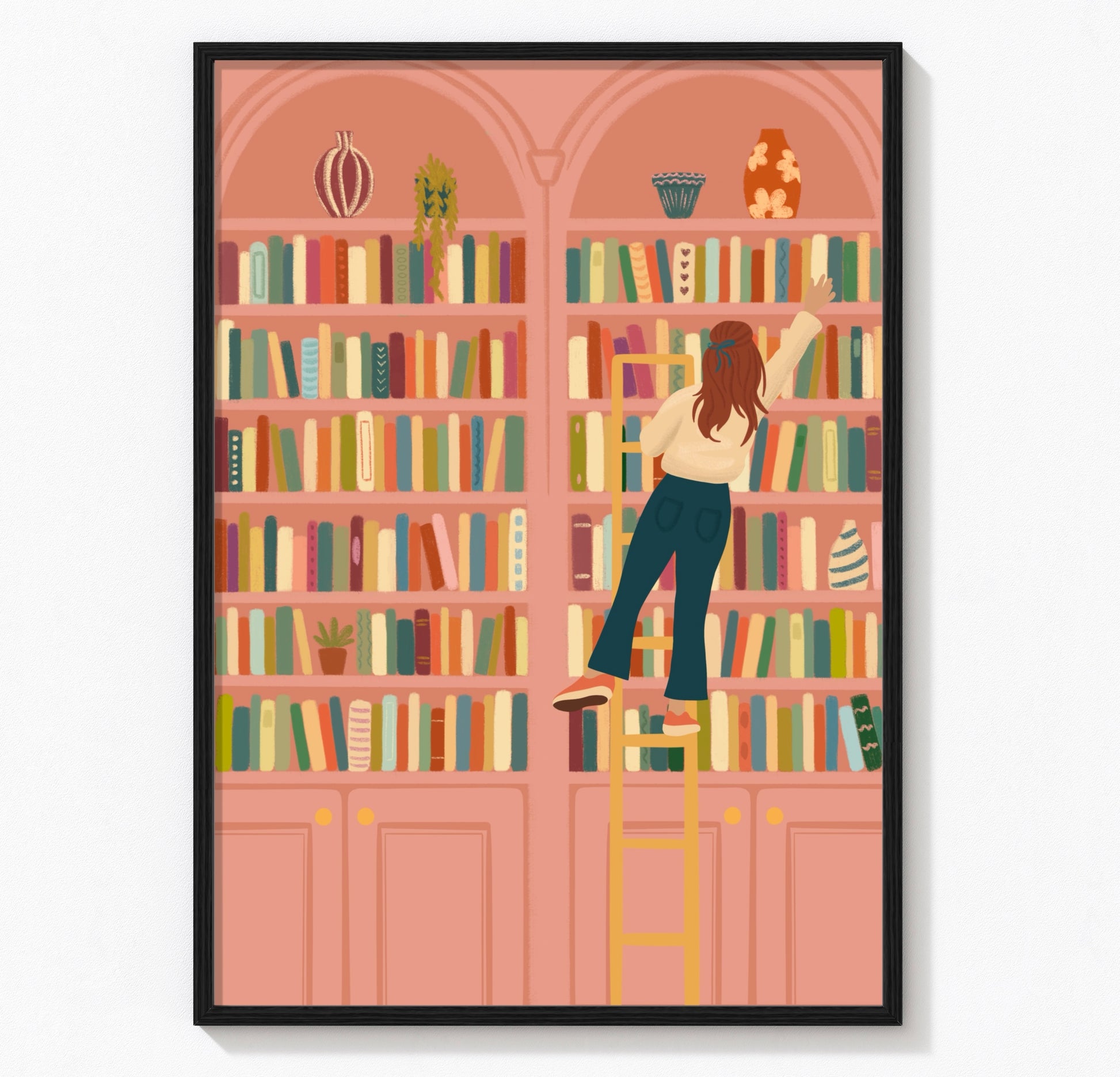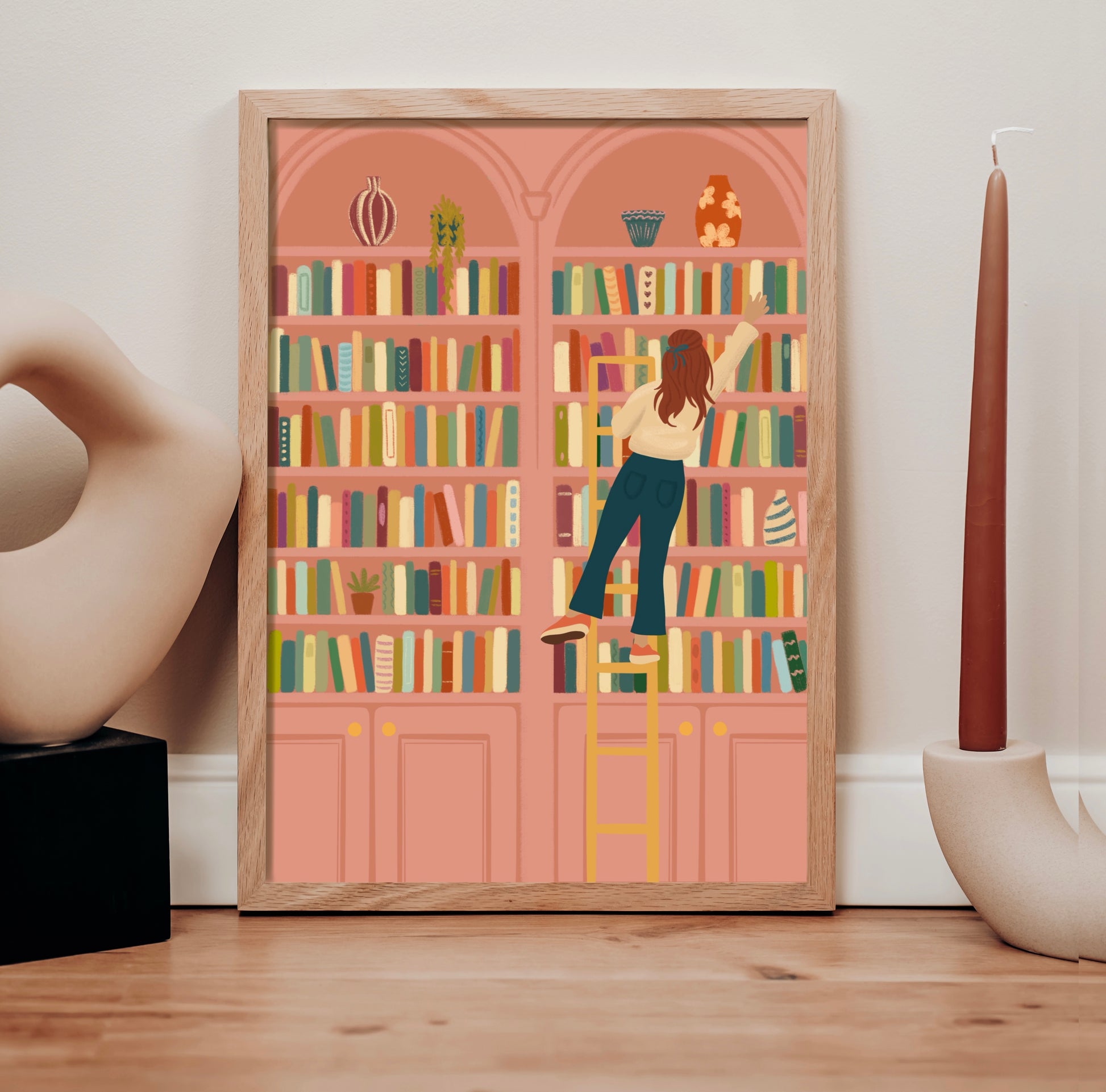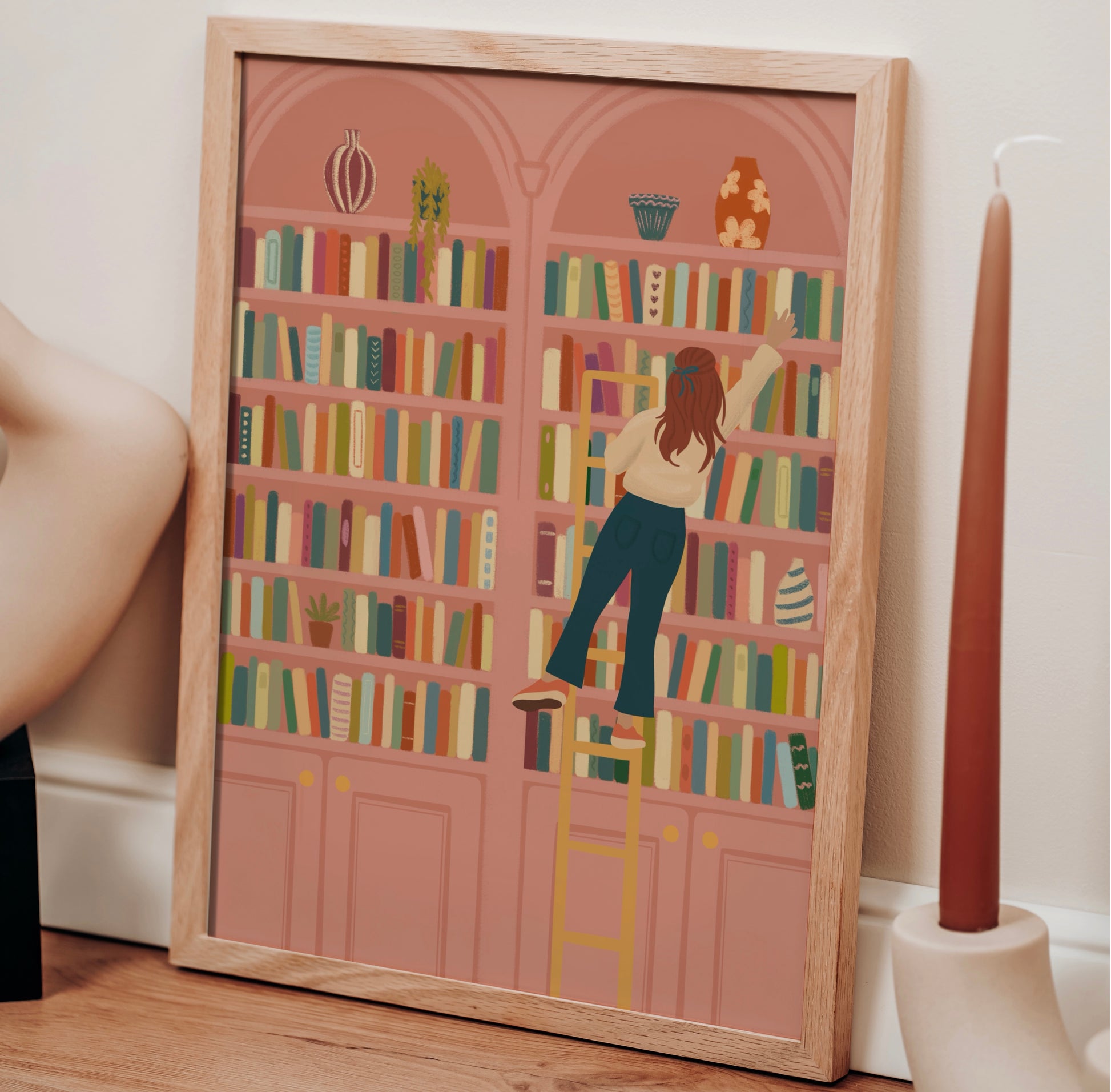Bookcase of Dreams Art Print | Rolling Ladder Wall Art
