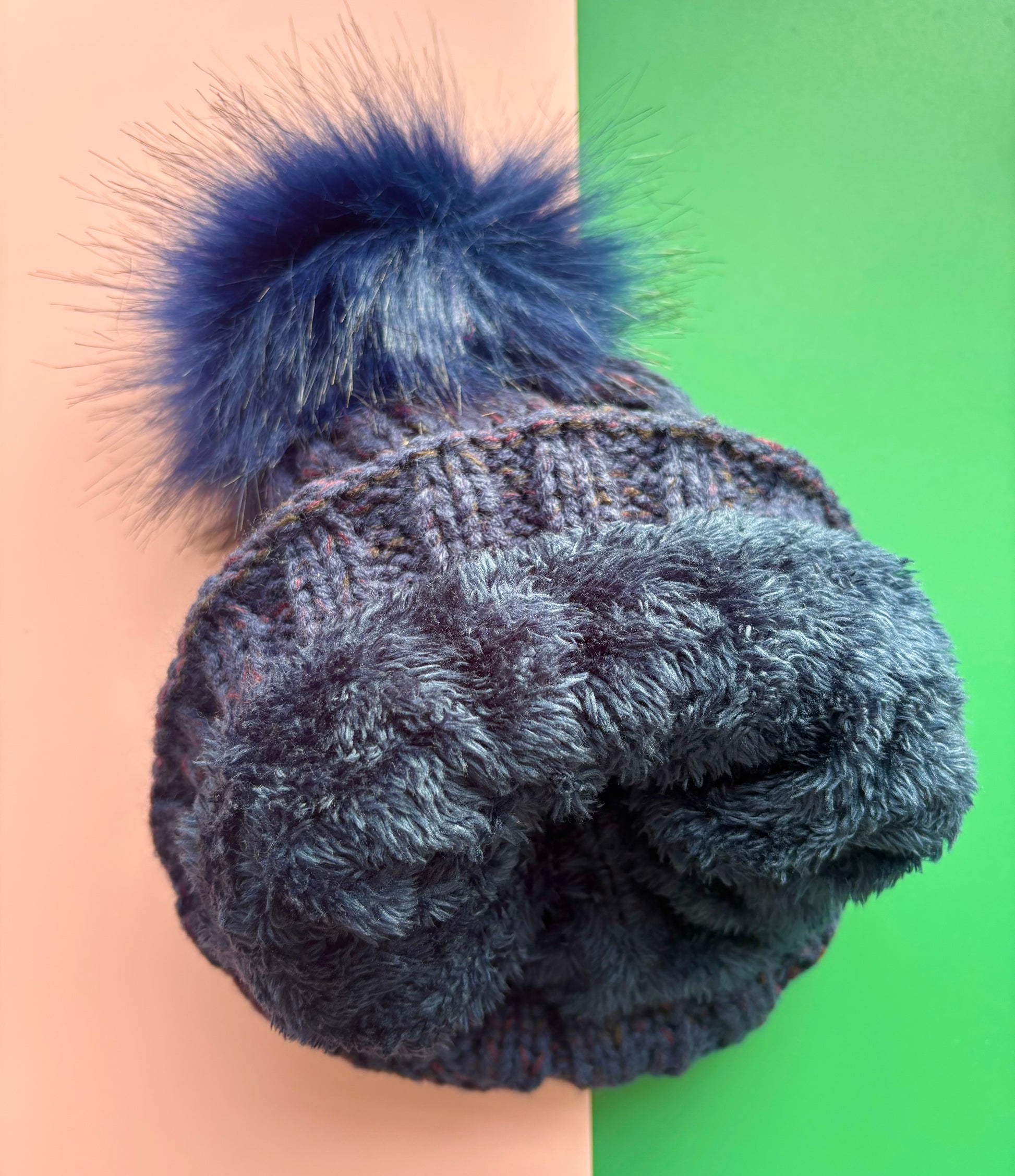 Made from soft knitted fabric, it comes with a fluffy warm lining to help keep you comfortable on colder days. The hat’s relaxed design makes it easy to wear for everyday use, whether you're running errands or just lounging.