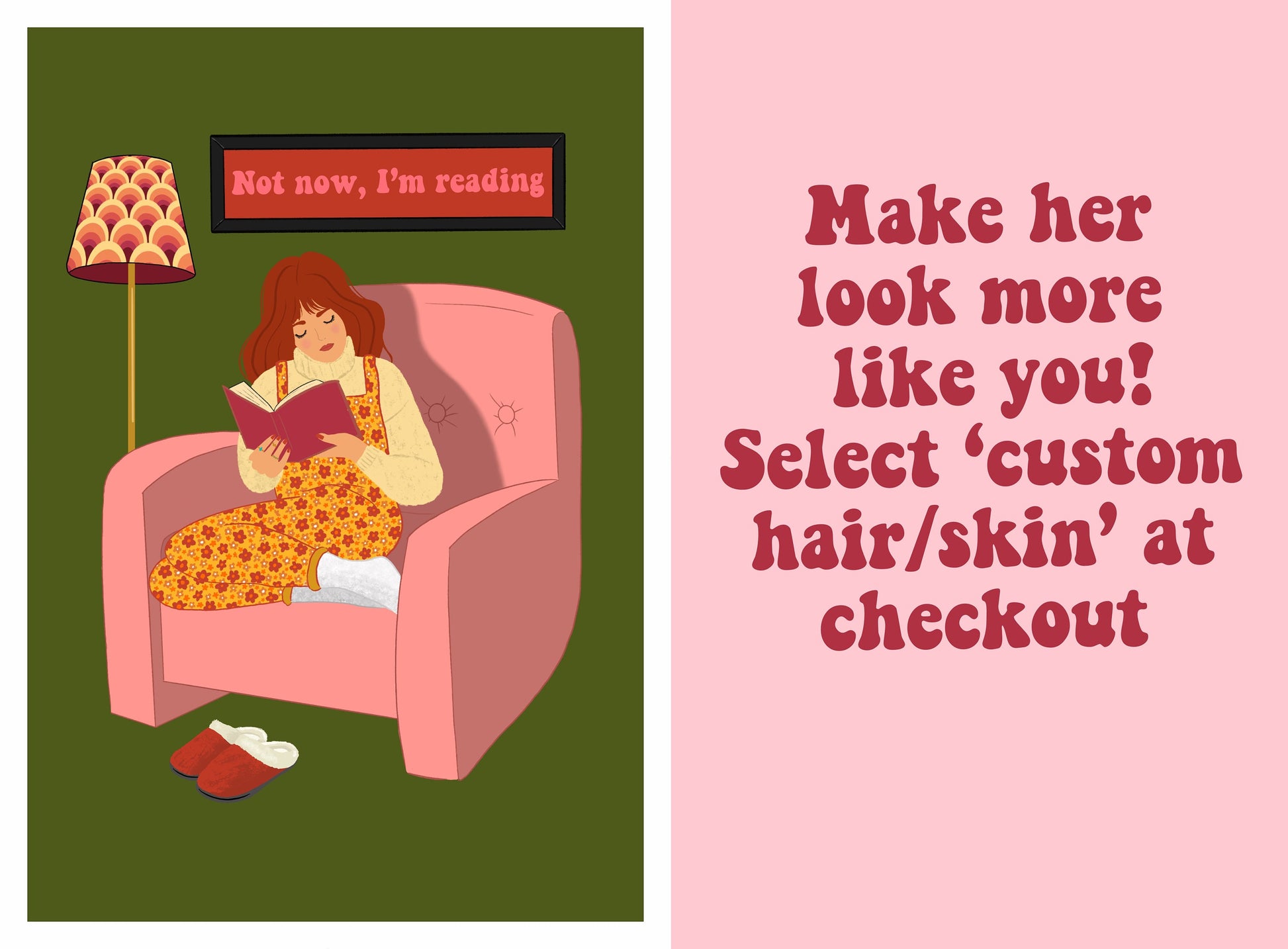Woman Reading Print | Personalised Book Art | Bookworm | Bookish Gift | Book Lover Present | Office Print